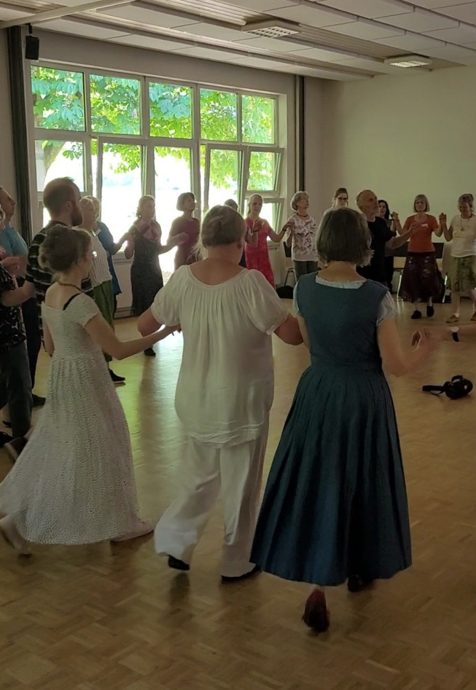 Michel hatte wieder neue und spannende Tänze aus aller Welt im Gepäck und wir tanzten durch Rumänien, Bulgarien, Israel, Kenia, die Türkei und Armenien. Mit wunderschöner Musik fiel uns das Erlernen der Choreographien leicht und Jung und Nicht-mehr-so-ganz-Jung waren im gemeinsamen Tanz fröhlich vereint.